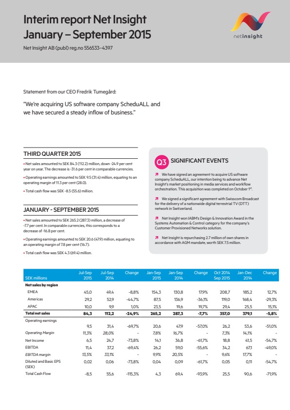 Net Inisght Interim report January-September 2015