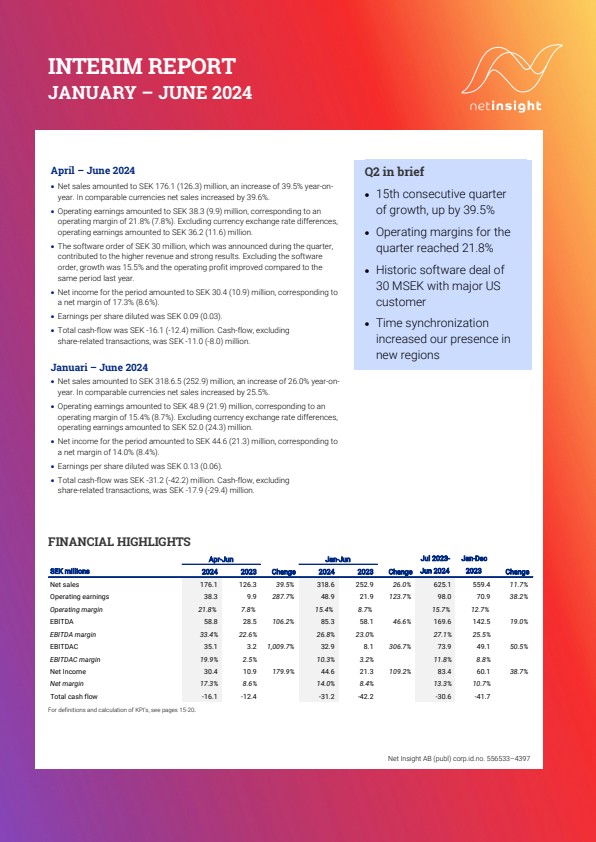 Net Insight Interim Report January – June 2024