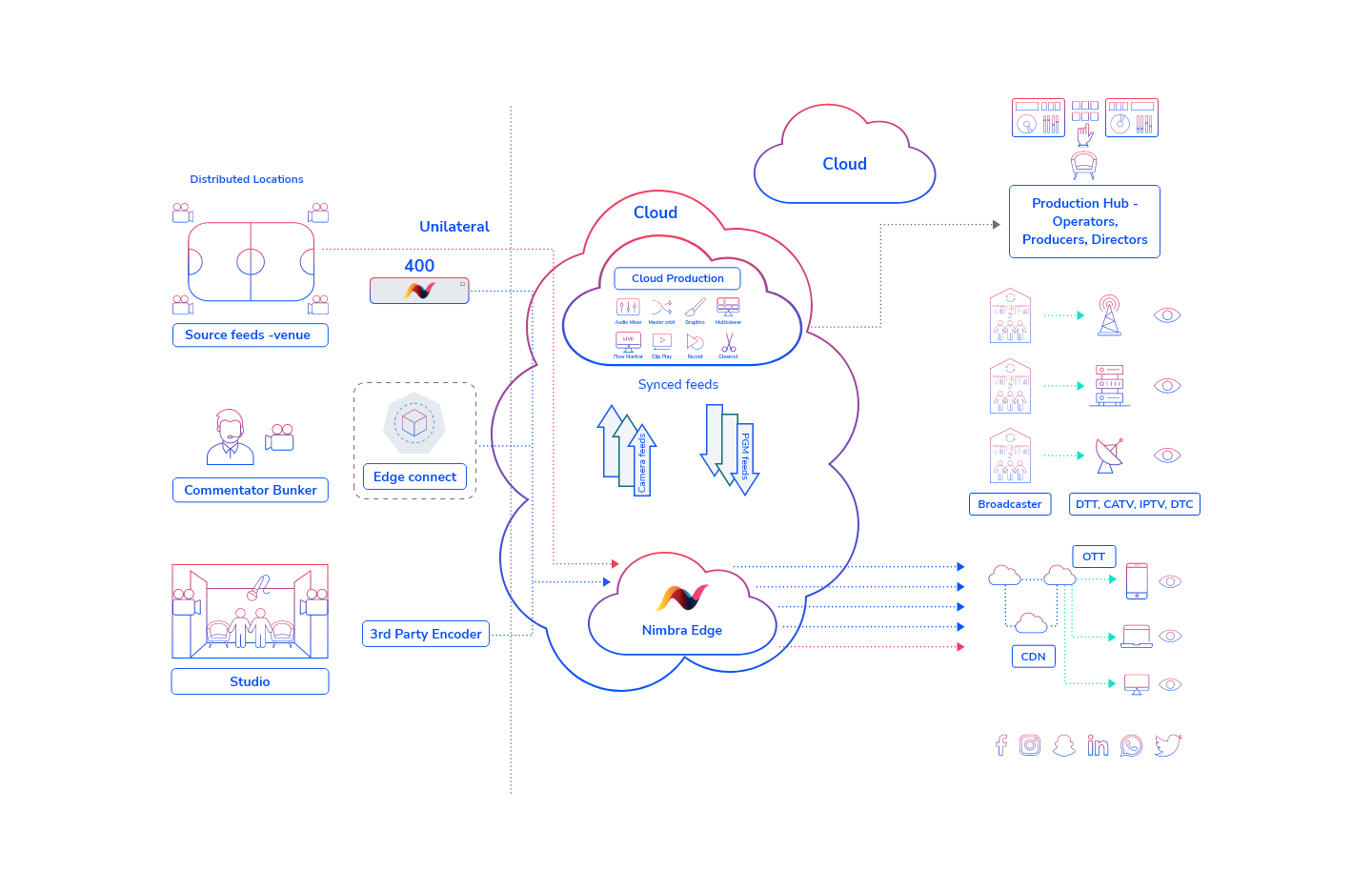 Nimbra Edge includes low-latency live media cloud routing allows to manage of complex deployments for end-customers.